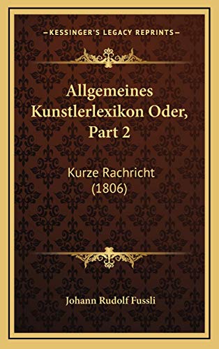 Allgemeines Kunstlerlexikon Oder, Part 2: Kurze Rachricht (1806) (German Edition) full version