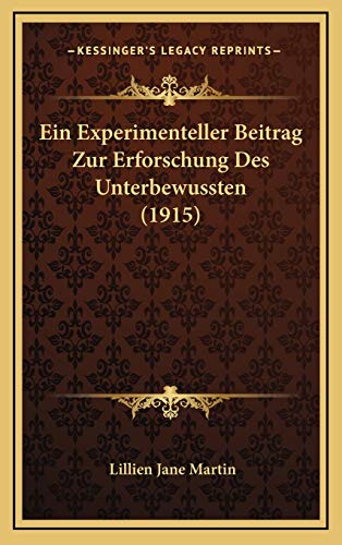 Ein Experimenteller Beitrag Zur Erforschung Des Unterbewussten (1915) (German Edition) full version