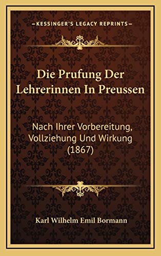 Die Prufung Der Lehrerinnen In Preussen: Nach Ihrer Vorbereitung, Vollziehung Und Wirkung (1867) (German Edition) full version
