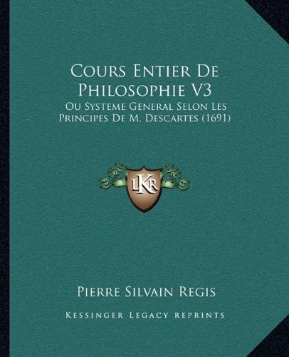 Cours Entier de Philosophie V3: Ou Systeme General Selon Les Principes de M. Descartes (1691) (French Edition) full version