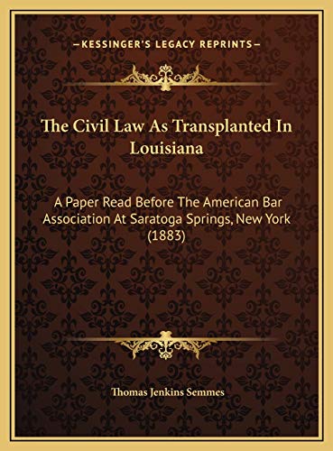 The Civil Law As Transplanted In Louisiana: A Paper Read Before The American Bar Association At Saratoga Springs, New York (1883) full version