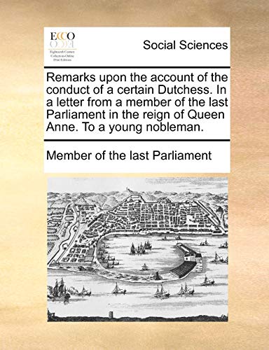 Remarks upon the account of the conduct of a certain Dutchess. In a letter from a member of the last Parliament in the reign of Queen Anne. To a young nobleman. full version