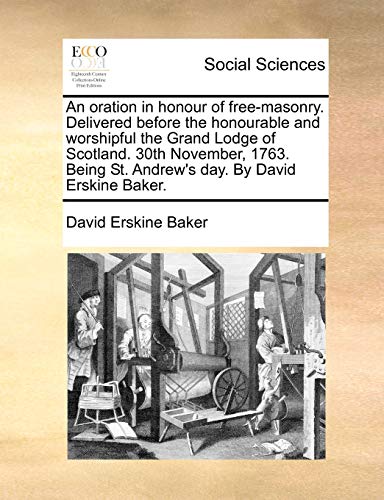 An oration in honour of free-masonry. Delivered before the honourable and worshipful the Grand Lodge of Scotland. 30th November, 1763. Being St. Andrew's day. By David Erskine Baker. full version