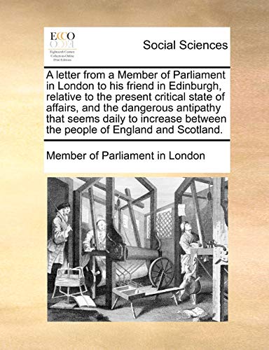 A letter from a Member of Parliament in London to his friend in Edinburgh, relative to the present critical state of affairs, and the dangerous ... between the people of England and Scotland. full version