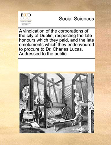 You are about to access our book library "A vindication of the corporations of the city of Dublin, respecting the late honours which they paid, and the late emoluments which they endeavoured ... Dr. Charles Lucas. Addressed to the public. full version"