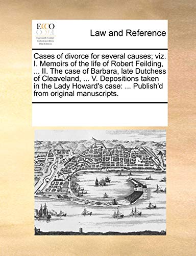 You are about to access our book library "Cases of divorce for several causes; viz. I. Memoirs of the life of Robert Feilding, ... II. The case of Barbara, late Dutchess of Cleaveland, ... V. ... ... Publish'd from original manuscripts. full version"