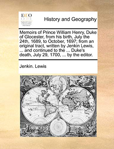 You are about to access our book library "Memoirs of Prince William Henry, Duke of Glocester, from his birth, July the 24th, 1689, to October, 1697; from an original tract, written by Jenkin ... death, July 29, 1700, ... by the editor. full version"