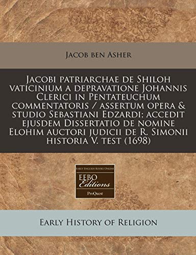 Jacobi patriarchae de Shiloh vaticinium a depravatione Johannis Clerici in Pentateuchum commentatoris / assertum opera & studio Sebastiani Edzardi; ... historia V. test (1698) (Latin Edition) full version