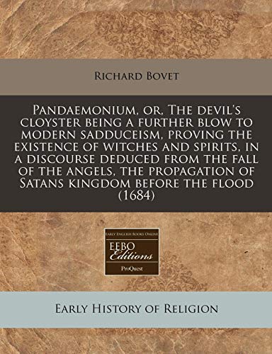 You are about to access our book library "Pandaemonium, or, The devil's cloyster being a further blow to modern sadduceism, proving the existence of witches and spirits, in a discourse deduced ... of Satans kingdom before the flood (1684) full version"