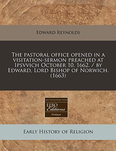 The pastoral office opened in a visitation-sermon preached at Ipsvvich October 10, 1662. / by Edward, Lord Bishop of Norwich. (1663) full version