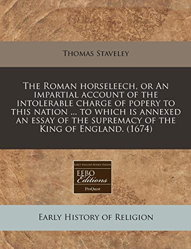The Roman horseleech, or An impartial account of the intolerable charge of popery to this nation ... to which is annexed an essay of the supremacy of the King of England. (1674) full version