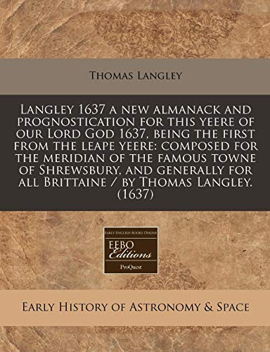 You are about to access our book library "Langley 1637 a new almanack and prognostication for this yeere of our Lord God 1637, being the first from the leape yeere: composed for the meridian ... for all Brittaine / by Thomas Langley. (1637) full version"