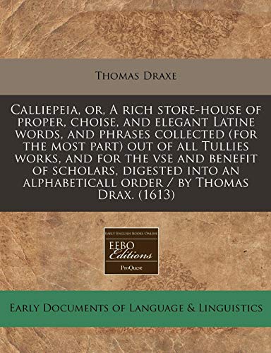 You are about to access our book library "Calliepeia, or, A rich store-house of proper, choise, and elegant Latine words, and phrases collected (for the most part) out of all Tullies works, ... alphabeticall order / by Thomas Drax. (1613) full version"