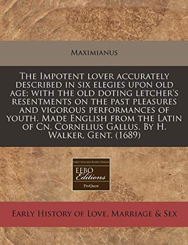 You are about to access our book library "The Impotent lover accurately described in six elegies upon old age; with the old doting letcher's resentments on the past pleasures and vigorous ... Cornelius Gallus. By H. Walker, Gent. (1689) full version"