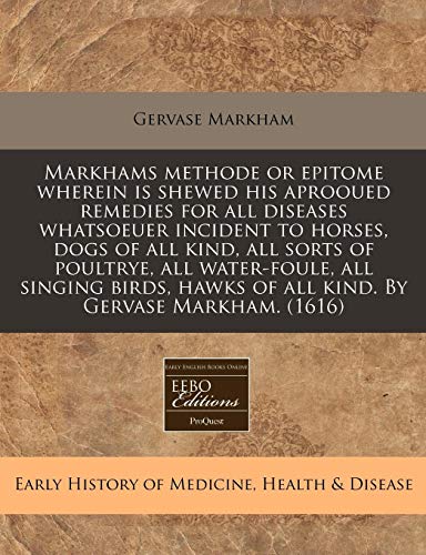 Markhams methode or epitome wherein is shewed his aprooued remedies for all diseases whatsoeuer incident to horses, dogs of all kind, all sorts of ... of all kind. By Gervase Markham. (1616) full version
