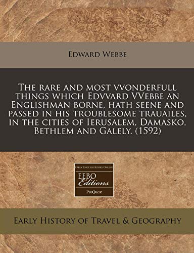 You are about to access our book library "The rare and most vvonderfull things which Edvvard VVebbe an Englishman borne, hath seene and passed in his troublesome trauailes, in the cities of Ierusalem, Damasko, Bethlem and Galely. (1592) full version"