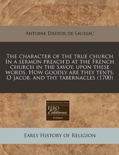 The character of the true church In a sermon preach'd at the French church in the Savoy, upon these words, How goodly are they tents, O Jacob, and thy tabernacles (1700) full version
