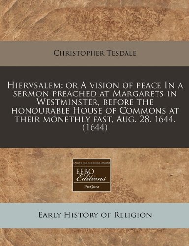 Hiervsalem: or A vision of peace In a sermon preached at Margarets in Westminster, before the honourable House of Commons at their monethly fast, Aug. 28. 1644. (1644) full version