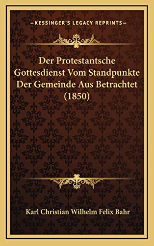 Der Protestantsche Gottesdienst Vom Standpunkte Der Gemeinde Aus Betrachtet (1850) (German Edition) full version
