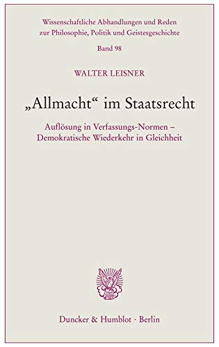 Allmacht Im Staatsrecht: Auflosung in Verfassungs-normen Demokratische Wiederkehr in Gleichheit (Wissenschaftliche Abhandlungen Und Reden Zur ... Und Geistesgeschichte) (German Edition) full version