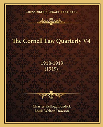The Cornell Law Quarterly V4: 1918-1919 (1919) full version