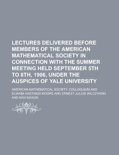 Lectures Delivered Before Members of the American Mathematical Society in Connection with the Summer Meeting Held September 5th to 8th, 1906, Under the Auspices of Yale University full version