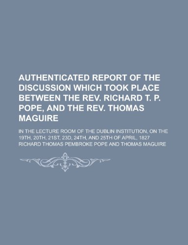 You are about to access our book library "Authenticated Report of the Discussion which Took Place Between the Rev. Richard T. P. Pope, and the Rev. Thomas Maguire; In the Lecture Room of the ... 21st, 23d, 24th, and 25th of April, 1827 full version"