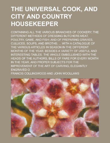 You are about to access our book library "The Universal Cook, and City and Country Housekeeper; Containing All the Various Branches of Cookery; the Different Methods of Dressing Butchers Meat, ... Gravies, Cullices, Soups, and Broths; ... full version"