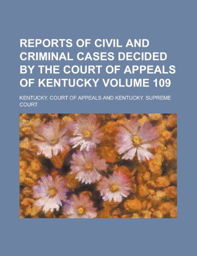 Reports of Civil and Criminal Cases Decided by the Court of Appeals of Kentucky Volume 109 full version