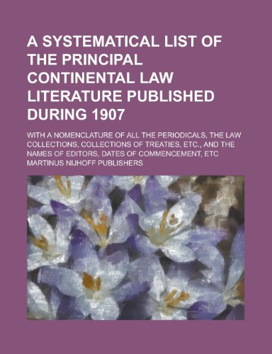 A systematical list of the principal continental law literature published during 1907; with a nomenclature of all the periodicals, the law ... names of editors, dates of commencement, etc full version
