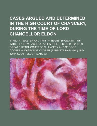 You are about to access our book library "Cases argued and determined in the High court of chancery, during the time of Lord Chancellor Eldon; in Hilary, Easter and Trinity terms, 55 Geo. III. ... a few cases of an earlier period [1792-1814] full version"