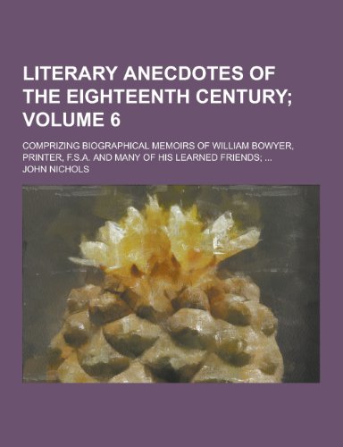 Literary anecdotes of the eighteenth century; comprizing biographical memoirs of William Bowyer, printer, F.S.A. and many of his learned friends; ... Volume 6 full version
