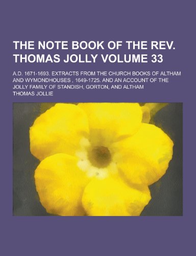 The Note Book of the REV. Thomas Jolly; A.D. 1671-1693. Extracts from the Church Books of Altham and Wymondhouses, 1649-1725. and an Account of the Jo full version