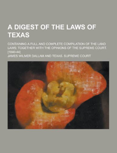 A Digest of the Laws of Texas; Containing a Full and Complete Compilation of the Land Laws; Together with the Opinions of the Supreme Court. [1840-4 full version