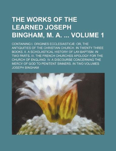 You are about to access our book library "The works of the learned Joseph Bingham, M. A. Volume 1; Containing I. Origines Ecclesiasticæ or, The antiquities of the Christian Church. In twenty ... parts. III. The French churches apology fo full version"