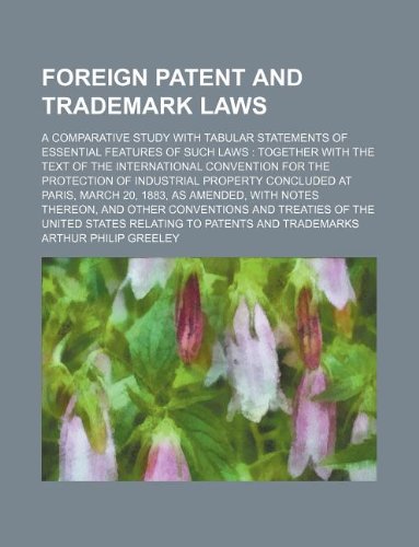 Foreign patent and trademark laws; a comparative study with tabular statements of essential features of such laws together with the text of the ... concluded at Paris, March 20, 1883, as amen full version