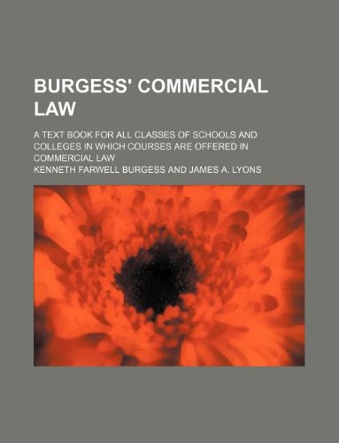 Burgess' Commercial Law; A Text Book for All Classes of Schools and Colleges in Which Courses Are Offered in Commercial Law full version
