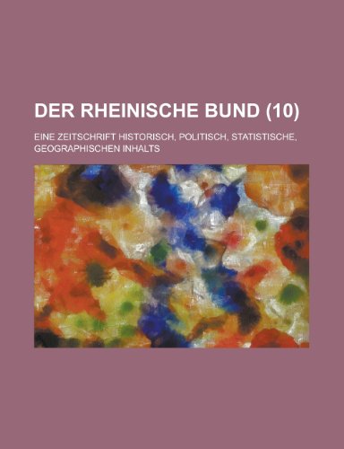 Der Rheinische Bund; Eine Zeitschrift Historisch, Politisch, Statistische, Geographischen Inhalts (10 ) (English and German Edition) full version