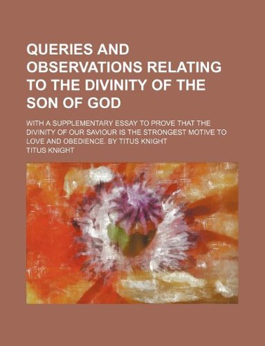 You are about to access our book library "Queries and Observations Relating to the Divinity of the Son of God; With a Supplementary Essay to Prove That the Divinity of Our Saviour Is the Strongest Motive to Love and Obedience. by Titus Knight full version"