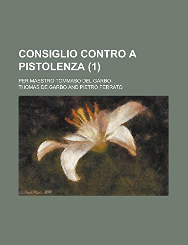 Consiglio contro a pistolenza; per maestro Tommaso del Garbo (1) (Italian Edition) full version