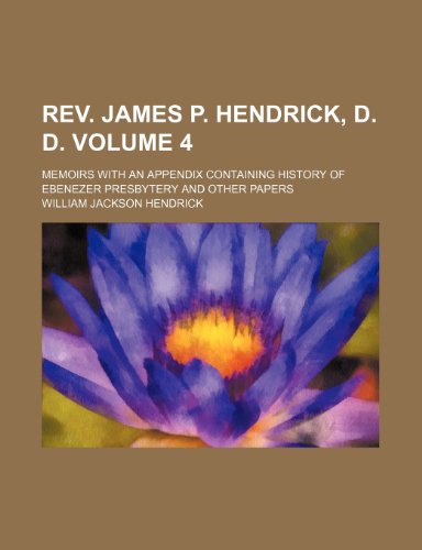 Rev. James P. Hendrick, D. D. Volume 4; Memoirs with an appendix containing history of Ebenezer presbytery and other papers full version