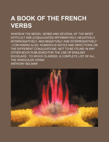 You are about to access our book library "A book of the French verbs; wherein the model verbs and several of the most difficult are [co]njugated affirmatively, negatively, interrogatively, and ... notes and directions on the different conjuga full version"