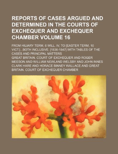 You are about to access our book library "Reports of cases argued and determined in the courts of Exchequer and Exchequer chamber Volume 16; from Hiliary term, 6 Will. IV, to [Easter term, 10 ... tables of the cases and principal matters full version"