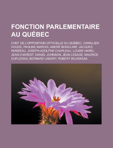 You are about to access our book library "Fonction Parlementaire Au Quebec: Chef de L'Opposition Officielle Du Quebec, Camillien Houde, Pauline Marois, Andre Boisclair, Jacques Parizeau, Joseph-Adolphe Chapleau, Louise Harel, Jean Charest, Daniel Johnson, Jean Lesage, Maurice Duplessis full version"
