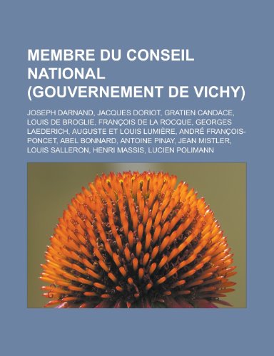 You are about to access our book library "Membre Du Conseil National (Gouvernement de Vichy): Joseph Darnand, Jacques Doriot, Gratien Candace, Louis de Broglie, Francois de La Rocque, Georges Laederich, Auguste Et Louis Lumiere, Andre Francois-Poncet, Abel Bonnard, Antoine Pinay, Jean Mistler full version"