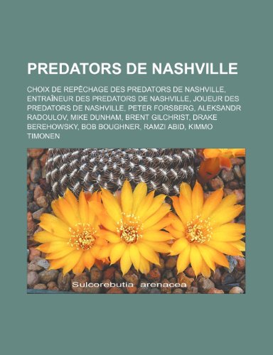 You are about to access our book library "Predators de Nashville: Choix de Repechage Des Predators de Nashville, Entraineur Des Predators de Nashville, Joueur Des Predators de Nashville, Peter Forsberg, Aleksandr Radoulov, Mike Dunham, Brent Gilchrist, Drake Berehowsky, Bob Boughner, Ramzi Abid full version"