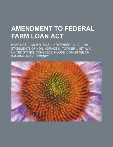 Amendment to Federal farm loan act; Hearings ... on H.R. 8038 ... November 12[-13] 1919. Statements of Hon. Horace M. Towner ... [et al.] ... full version