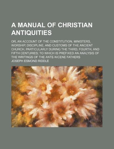 You are about to access our book library "A manual of Christian antiquities; or, An account of the constitution, ministers, worship, discipline, and customs of the ancient church, particularly ... an analysis of the writings of the an full version"