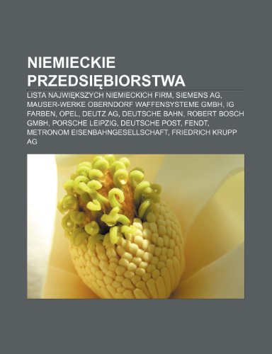 You are about to access our book library "Niemieckie Przedsi Biorstwa: Lista Najwi Kszych Niemieckich Firm, Siemens AG, Mauser-Werke Oberndorf Waffensysteme Gmbh, Ig Farben, Opel, Deutz AG, Deutsche Bahn, Robert Bosch Gmbh, Porsche Leipzig, Deutsche Post, Fendt, Metronom Eisenbahngesellschaft full version"