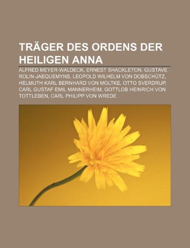 Trager Des Ordens Der Heiligen Anna: Alfred Meyer-Waldeck, Ernest Shackleton, Gustave Rolin-Jaequemyns, Leopold Wilhelm Von Dobschutz full version